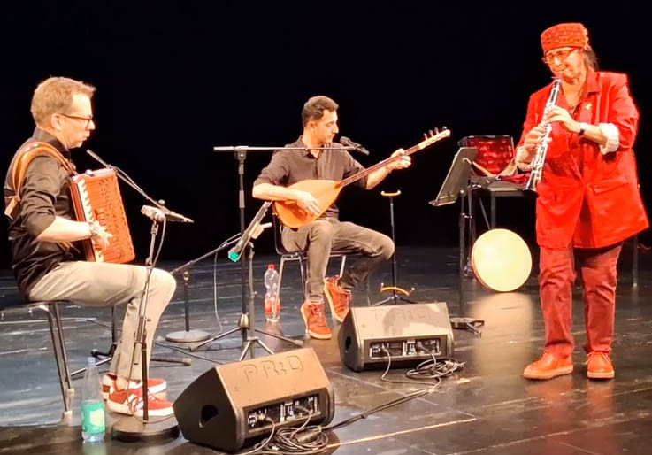 Die als „Queen of Klezmer“ bekannte Irith Gabriely aus Haifa (Klarinette, Saxophon, Moderation) tritt im interreligiösen Trio zusammen mit Aram Atti aus Kobane in Syrien (Tambur: arabisch- persische Langhalslaute, Gesang) und dem Dekanatskantor Thomas Wächter aus Taunusstein (Klavier, Akkordeon) auf.